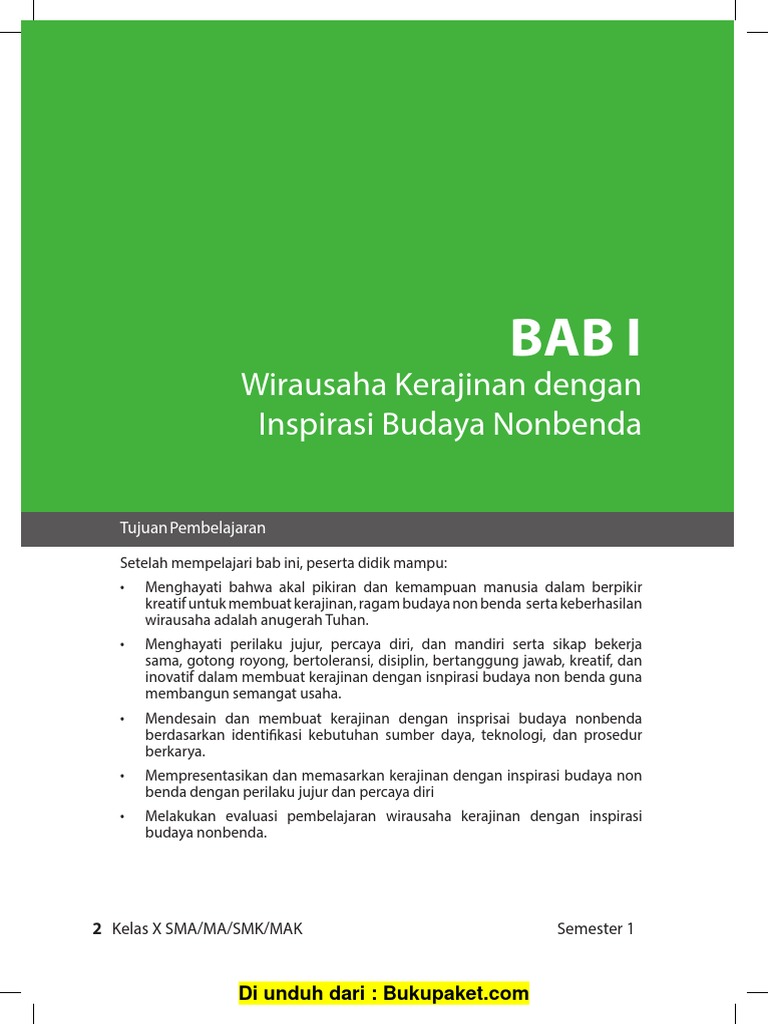 Mebel etnis suku asmat seni ukir dengan aksara kuno lukisan yang menggabungkan symbol symbol kerajaan jawa kaos dengan gambar gambar cerita rakyat batik modern agar lebih disuka anak muda topeng kelompen terompah kayu dengan hiasan etnik. Indonesia sejak dulu terkenal sebagai negara yang kaya akan budayanya. 5 poin berikan contoh kerajinan dengan inspirasi. Budaya non benda apa yang akan menjadi inspirasi. Berikan contoh upaya menjaga kesehatan dan keselamatan kerja. Proses perancangan kerajinan diawali dengan.