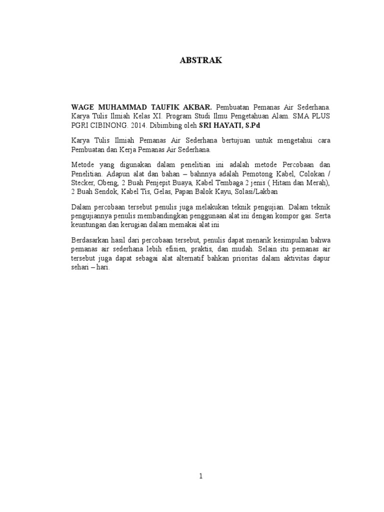 Contoh abstrak dalam karya ilmiah. Jadi abstrak dapat memudahkan kita dalam membuat karya tulis makalah paper dan skripsi. Beberapa bagian dari penulisan karya ilmiah seperi contoh pendahuluan kajian pustaka metode penelitian dan daftar pustaka sudah dijelaskan. Selain itu juga mahasiswa perlu mengetahui tahap tahap penulisan dan sistematika penulisan karya ilmiah sehingga dalam proses menyusun suatu karya ilmiah tidak mengalami kesalahan yang fatal dan karya ilmiah yang ditulis dapat diterima semua kalangan. Abstrak yang efektif umumnya mengandung poin poin esensial dari keseluruhan isi makalah yang dirangkum dalam 200 300 kata. Penggunaan bahasa asing dalam abstrak yang dibuat harus dicetak miring dalam penulisannya. Struktur abstrak karya ilmiah.