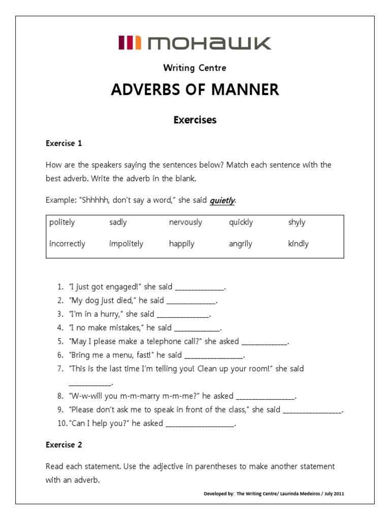Agar pembaca semakin memahami adverb of manner berikut ini merupakan contoh soal pilihan ganda adverb of manner. I wait anxiously when my mom sees the doctor. Banyak adverb of manner merupakan ly adverb yang diperoleh dengan menambahkan ly pada adjective kata sifat. Cita cita saya adalah berbicara inggris dengan fasih soal adverb of manner. Untuk membantu kalian dalam memahami adverb of manner kalian bisa menyimak contoh adverb of manner di bawah ini beserta kalimatnya. Mengenai penjelasan dan cara penggunaan adverb of manner bisa kalian baca pada artikel kami yang berjudul pengertian contoh dan cara penggunaan adverb of manner kata keterangan cara.