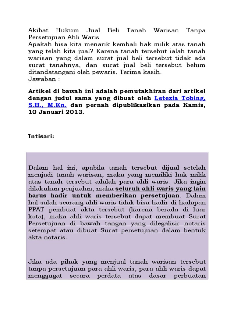 Discover everything scribd has to offer including books and audiobooks from major publishers. Dalam proses jual beli tanah atau rumah warisan tersebut semua ahli waris tidak perlu hadir.
