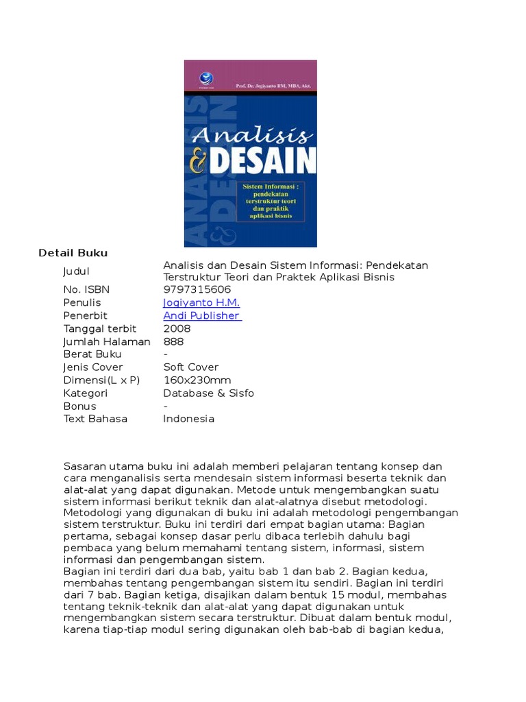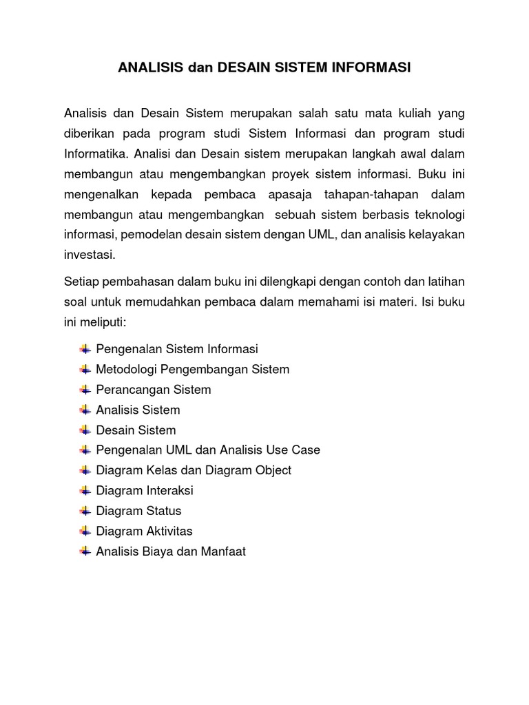 Contoh analisis dan desain sistem informasi. Analisis sistem adalah penjabaran dari suatu sistem informasi yang utuh ke dalam berbagai macam bagian komponennya dengan maksud agar kita dapat mengidentifikasi atau mengevaluasi berbagai macam masalah maupun hambatan yang akan timbul pada sistem sehingga nantinya dapat dilakukan penanggulangan perbaikan atau juga pengembangan. Analisis dan desain sistem informasi. 2014 5 analisa dan perancangan sistem informasi modul 01 pusat bahan ajar dan elearning httpwwwmercubuanaacidteam dosen atau menuruta azhar susanto batas sistem. Pengertian analisis sistem system analis penguraian dari suatu system informasi yang utuh ke dalam bagian bagian komponennya dengan maksud untuk mengidentifikasi dan mengevaluasi permasalahan permasalahan kesempatan kesempatan hambatan hambatan yang terjadi dan kebutuhan kebutuhan yang diharapkan sehingga dapat diusulkan. Contoh sistem informasi manajemen berbicara mengenai sistem informasi manajemen perusahaan atau organisasi yang selalu menggunakan teknologi maka akan selalu berkaitan dengan pihak pihak dari kalangan praktisi informatika ahli it informasi teknologi karena pada umumnya merekalah yang merancang aplikasi sistem informasi manajemen. Ada beberapa contoh sistem informasi manajemen dalam.