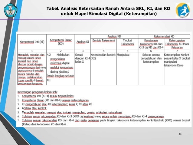 Modul analisis dokumen skl ki dan kd kurikulum 2013 smk ini merupakan salah satu materi pokok dalam pelatihan dan pendampingan implementasi kurikulum 2013 smk diterbitkan oleh ditpsmk dijendikdasmen kemdikbud tahun 2018. Analisis skl ki kd ialah kegiatan menguraikan keterkaitan skl ki kd atas berbagai bagiannya menelaah bagian itu sendiri serta hubungan antar bagian untuk memperoleh berbagai informasi pedagogis yang berguna untuk membuat perencanaan pembelajaran yang benar. Analisis keterkaitan skl ki dan kd kurikulum 2013 smk yang mungkin anda butuhkan saat inimaka tepat sekali mengunjungi blog kami karena dalam kali ini kami akan memudahkan anda semua dalam mencari tentang keterkaitan skl ki dan kd semua mapel smk dan contoh sinkronisasi skl ki dan kdkami pastikan juga anda bisa mendapatkan file contoh analisis keterkaitan skl ki dan kd kurikulum 2013 secara. Pertanyaan pertanyaan terkait analisis skl ki kd itu mungkin menggelayuti banyak pendidik yang telah mengikuti bimbingan teknis implementasi kurikulum 2013 revisi 2017. Format pengisian analisis skl ki kd kurikulum 2013 rev. Analisis keterkaitan ranah antara skl ki dan kd untuk mapel simulasi digital.