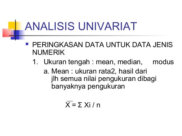Untuk non parametrik adalah uji runs uji binomial uji kolmogorov smirnov dan lainnya. Discover everything scribd has to offer including books and audiobooks from major publishers. Maka statistikian dapat menyimpulkan perbedaan antara analisis multivariat dan analisis multivariabel yaitu. Analisis regresi berganda merupakan metode analisis yang dikategorikan ke dalam analisis univariat. Analisis multivariat pastilah analisis multivariabel sedangkan analisis multivariabel belum tentu analisis multivariat. Adalah analisis yang dilakukan pada satu variabel atau ada lebih variabel tapi tidak saling terkait jadi setiap variabel dianalisis sendiri sendiri ya sobaat.