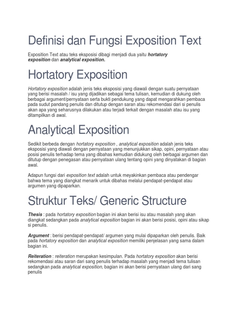 Throw trash in its place. The official department has agreed that the service needs improvement. Nah untuk kali ini contohtext tak akan membahas mengenai definisi struktur ataupun ciri kebahasaan namun hanya akan memberikan sanalytical contoh teks analytical exposition. Contoh analytcal exposition tentang manfaat tidur lelap 3. Ke 6 contoh teks analytical exposition dalam bahasa inggris lengkap dengan arti ini berkenaan dengan topik topik berikut. Contoh hortatory exposition text tentang sampah.