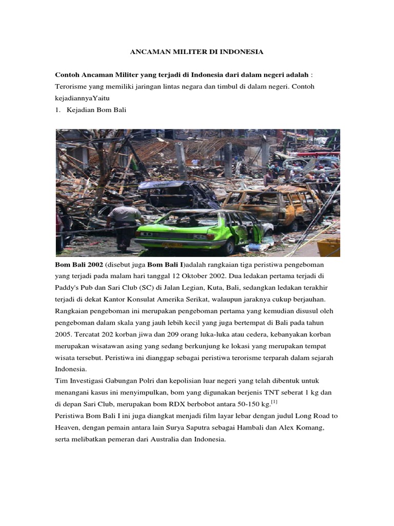 Contoh ancaman militer di indonesia. Pelanggaran wilayah contohnya. Dibawah ini adalah penjelesan mengenai ancaman militer dari pengertian jenis jenis contohnya. Contoh ancaman militer ancaman pastinya menjadi suatu permasalahan yang bisa meresahkan masyarakat di suatu negara. Contoh ancaman militer 1. Contoh ancaman militer dan non militer di indonesia sebuah negara memiliki tingkat ancaman yang berbeda beda baik ancaman militer maupun non militer. Dan acaman non militer itu juga bisa datang kapan saja dan dampaknya bisa berbahaya karena bisa merusak moral bangsa dan juga sendi sendi kehidupan masyarakatnya.