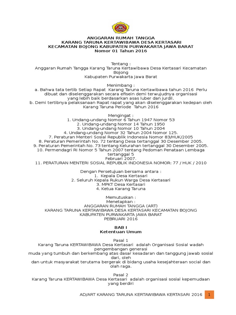 Contoh anggaran dasar dan anggaran rumah tangga organisasi kemasyarakatan. Tapi sebelumnya mimin mau bahas dulu dikit tentang ad art. Menyatakan diri untuk siap mematuhi dan mentaati anggaran dasar dan anggaran rumah tangga lsm p3an dan peraturan peraturan organisasi lainnya. Sekolah sepak bola kariangau tidak terkait atau indenpenden secara structural dengan organisasi social kemasyarakatan dan organisasi sosial politik manapun. Itulah yang dapat kami bagikan terkait contoh anggaran dasar dan anggaran rumah tangga organisasi kemasyarakatan. Pasal 5 kartu tanda pengenal 1. Anggota biasa ab yang diterima menjadi anggota biasa ab adalah warga negara indonesia yang memiliki persyaratan sebagai berikut.