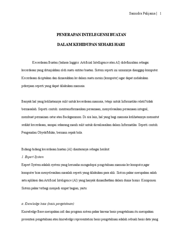 Berikut contoh kecerdasan buatan yang kita gunakan dalam kehidupan sehari hari. Contoh artificial intelligence kecerdasan buatan yang sering kita gunakan dalam kehidupan sehari hari gambar contoh artificial intelligence yang sering kita gunakan dalam kehidupan sehari hari istilah kecerdasan buatan mungkin terdengar menakutkan bagi beberapa orang tetapi telah digunakan selama beberapa dekade dan penerapannya lebih umum daripada yang anda bayangkan. Sementara kita mungkin berpikir bahwa masih ada beberapa tahun lagi hingga ai menyebabkan efek yang cukup besar pada kehidupan kita tanpa sadar ai sudah kita temukan dalam kehidupan kita. Contoh kecerdasan buatan 1. Adanya teknologi tersebut sudah seharusnya dimanfaatkan untuk hal hal yang baik supaya lebih menguntungkan dan tidak merugikan banyak orang. Contoh penerapan artificial intelligence yang populer saat ini kecerdasan buatan atau artificial intelligence ai adalah cabang ilmu komputer yang menekankan pengembangan intelijen mesin pola.