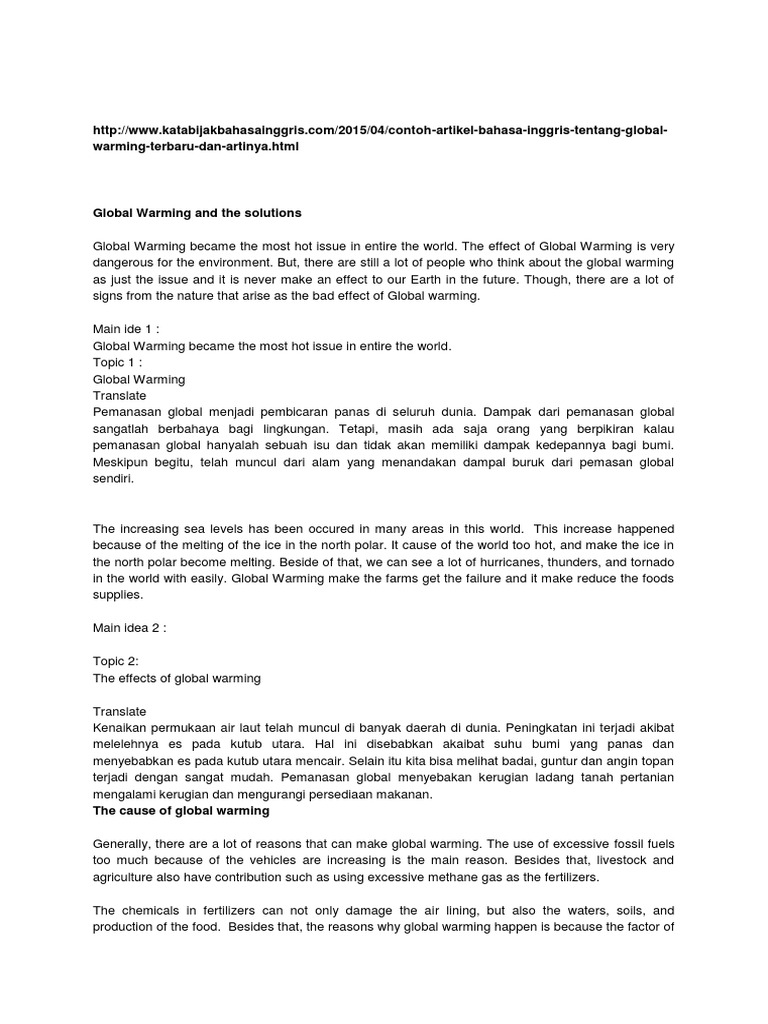 2 contoh artikel singkat dalam bahasa inggris tentang ekonomi bisnis beserta artinya ekonomi dan bisnis menjadi salah satu hal yang terus dibahas di dalam kehidupan sehari hari. Nah itu tadi contoh artikel bahasa inggris tentang global warming terbaru dan artinya semoga bermanfaat bagi anda yang sedang mencari artikel berbahasa inggris. Jangan lupa baca juga contoh diary bahasa inggris tentang pengalaman lucu dan artinya terbaru yang bisa membuat hari hari anda lebih ceria bersama diary lucu dan kisah anda.
