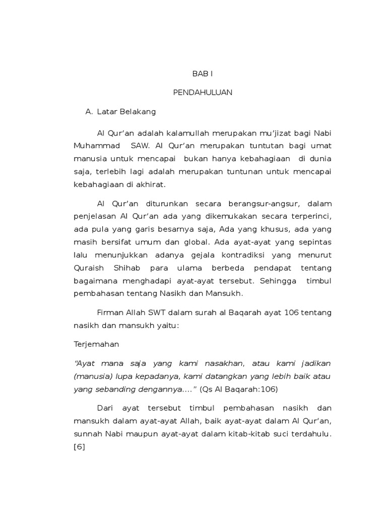 Contoh ayat nasikh dan mansukh. Nasakh dan mansukh ayat yang menghapus dan dihapus baik hukum dan lafadznya dalam ajaran islam terkandung berbagai hikmah di antaranya agar lebih siap menerima hukum islam seehingga syariat tidak langsung merubah apa yang telah menjadi kebiasaan yang telah mengakar dalam masyarakat misalnya pengharaman khamer pengharamannya secara bertahap mulai dari perintah menjauhi sampai terakhr. Karena itu ia harus berdasarkan kepada riwayat dan sejarah yang shahih tidak boleh berdasarkan kepada pendapat dan ijtihad. Menurut ibnu abbas bahwa yang di maksud dengan ayat muhkamat adalah nasikh halal dan haram denda denda kewajiban apa yang kita yakini dan kita laksanakan yang terdapat dalam al quran. Adapun sebagian dari contoh contoh ayat mansukh akan kami sampaikan di bawah insya alloh. Untuk mengetahui ayat ayat mana saja yang dimansukh silakan tunggu artikel berikutnya. Turunnya kitab suci al quran tidak terjadi sekaligus tapi beransur ansur dalam waktu 20 tahun lebih.