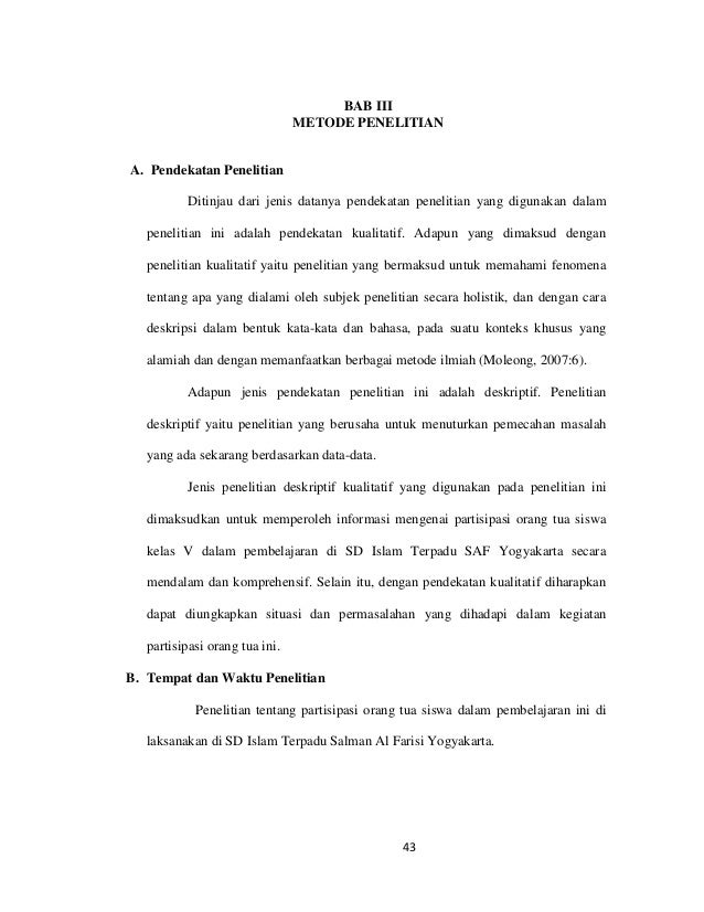 Contoh bab 3 penelitian kualitatif. Contoh kerangka bab 3 skripsi untuk penelitian kualitatif kuantitatif dan pengembangan ditulis oleh. Pendekatan dan metode penelitian penelitian ini menggunakan pendekatan penelitian kualitatif dimana penelitian kualitatif sebagai metode ilmiah sering digunakan dan dilaksanakan oleh sekelompok peneliti dalam bidang ilmu social termasuk juga ilmu pendidikan. Penelitian kualitatif lebih menekankan makna data dibalik yang teramati68. Oleh karena itu peneliti memilih menggunakan metode penelitian kualitatif untuk menentukan cara mencari mengumpulkan mengolah dan menganalisis data hasil penelitian tersebut. 33 metode penelitian 34 variabel penelitian dan pengukurannya 35 populasi dan sampel. Metode penelitian permasalahan yang akan dikaji oleh peneliti merupakan masalah yang bersifat sosial dan dinamis.