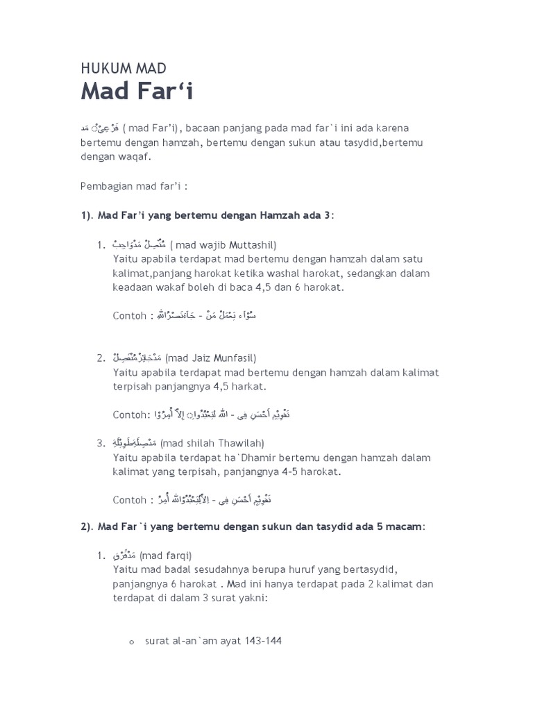 Mad farqi yaitu terjadi apabila jika bacaan mad hanya untuk membedakan antara pertanyaan atau bukan. Durasi mad farqi adalah 6 kharokat. Share to your friends. Berbeda dengan bacaan mad yang lainnya bacaan mad farqi di dalam al quran jarang ditemukan hanya terdapat empat tempat yaitu dalam surat al anam ayat 143 dan 144 surat yunus ayat 59 dan surat an naml ayat 59. Cara membacanya adalah sepanjang 6 harakat.