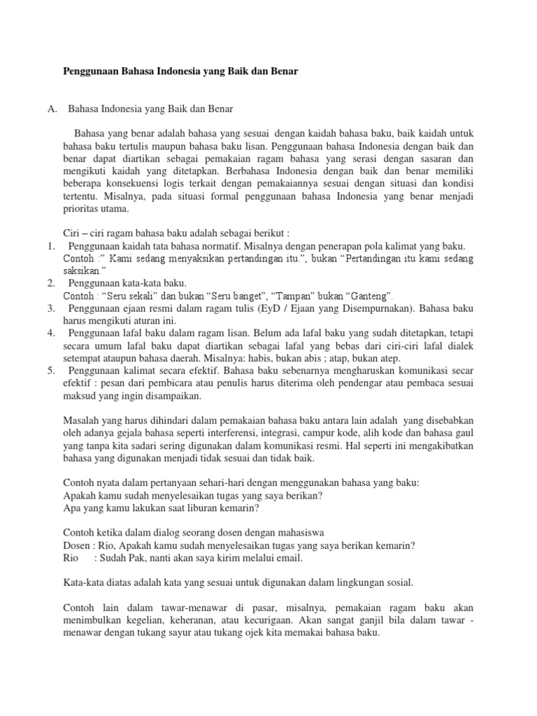 Contoh bahasa indonesia yang baik dan benar. Kumpulan contoh pidato lengkap yang baik dan benar pidato merupakan salah satu hal terpenting dalam sebuah acara baik formal maupun non formal. Kalimatid contoh kalimat efektif bahasa indonesia adalah bahasa yang kaya dan indah. Kita sebagai warga negara indonesia yang baik tentu ingin memahami dan menggunakan bahasa pemersatu bangsa ini dengan benar bukan. Mengingat pentingnya bahasa indonesia baik dalam kehidupan sehari hari maupun dalam kehidupan berbangsa dan bernegara pada kesempatan kali ini kita akan membahas penggunaan bahasa indonesia yang baik dan benar lengkap dengan contohnyamari langsung saja kita awali pembahasan mengenai penggunaan bahasa indonesia yang baik dan benar. Untuk itu bahasa indonesia perlu dikenal dipahami dan dikuasai sehingga dapat terus menjadi jati diri bangsa indonesia. Contoh di atas adalah contoh bahasa indonesia yang baku dan benar tetapi tidak baik dan tidak efektif karena tidak cocok dengan situasi pemakaian kalimat kalimat itu.