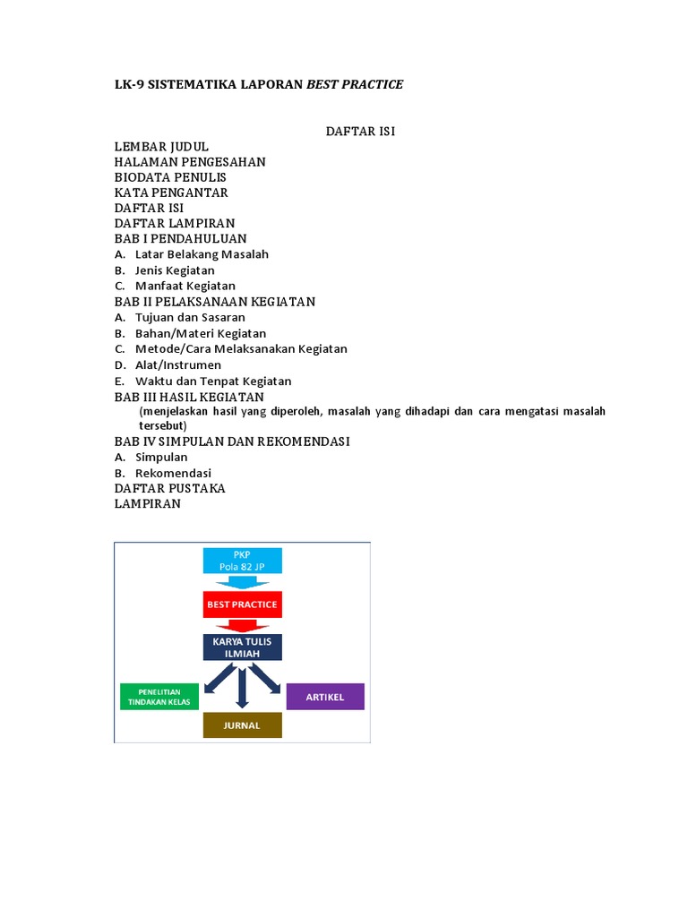 Contoh best practice sd 1 contoh best practice sd 2 demikian yang dapat saya bagikan tentu karya saya masih jauh dari sempurna untuk itu dimohonkan masukkan dari semua pihak. Di akhir kegiatan pelaksanaan program pkp berbasis zonasi ini setiap guru sasaran diwajibkan membuat laporan best practice sebagai tugastagihan yang harus dikumpulkan ke guru inti untuk dinilai. Dadan darsati spd sd negeri sukajadi kkg gugus ii babakanbandung uptd tk sd kecamatan situraja kabupaten sumedang 2012. Sebagai bahan acuan penulisan laporan best practice pkp silakan unduhdownload contoh laporan best practice pkp lengkap dan terbaru. Karya tulis ini merupakan best practice yang menggunakan pendekatan ex post facto. Contoh laporan best practice pkp pada guru sd kelas 5 informasi guru berikut ini adalah contoh laporan best practice pkp pada guru sd kelas 5 yang bisa anda download secara gratis di website kami.