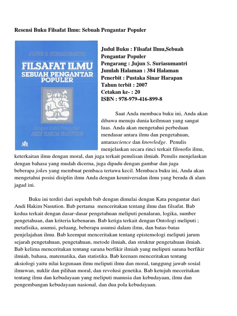 3 contoh resensi buku ilmu pengetahuan populer pandoby free download game software and movies for pc 3 contoh resensi buku ilmu pengetahuan populer. Contoh resensi buku pengetahuan akan menjadi pembahasan kali ini. Pengertian ilmu pengetahuan teknologi filsafat syarat perbedaan ciri proses sumber teori para ahli. Sebenarnya banyak sekali contoh resensi seperti contoh resensi novel contoh resensi buku fiksi dan lainnyaberikut ini pembahasan mengenai resensi buku dan contoh. Sebelum kita belajar untuk meresensi sebuah buku kita semestinya memahami dulu arti atau makna dari resensi itu sendiri. Demikianlah pembahasan mengenai 7 contoh resensi buku non fiksi fiksi pengetahuan pendidikan remaja pelajaran dan bahasa indonesia semoga dengan adanya ulasan tersebut dapat menambah wawasan dan pengetahuan kalian semua terima kasih banyak atas kunjungannya.