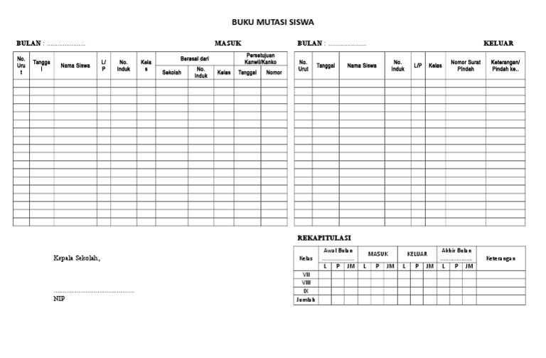 Contoh buku mutasi siswa. Download contoh format tabel buku mutasi siswa lengkap administrasi guru buku mutasi siswa proses mutasi siswa harus dicatat dan dibukukan dengan baik sehingga dapat dilakukan monitoring terhadap siswa yang melakukan perpindahan baik siswa yang masuk maupun siswa yang pindah sekolah keluar.