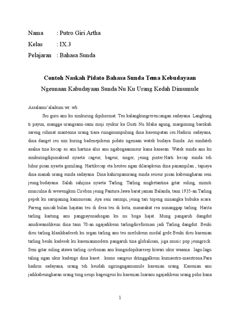 Dan tentunya merupakan acara yang sangat berkesan dan meninggalkan kenangan bagi para siswa yang hendak lulus dan meninggalkan sekolah. Ibu guru anu ku simkuring dipihormat. Contoh teks ceramah ceramah merupakan kegiatan penyampaian pesan yang mempunyai tujuan untuk memberikan nasehat petunjuk maupun petuah kepada pendengar secara lisan. Ada beberapa tema ceramah yang bisa menjadi pembelajaran. Contoh drama bahasa sunda si kabayan jadi boyband maret 37 februari 27 januari 45 2012 58 november 22. Pidato bahasa sunda tentang kebudayaan.