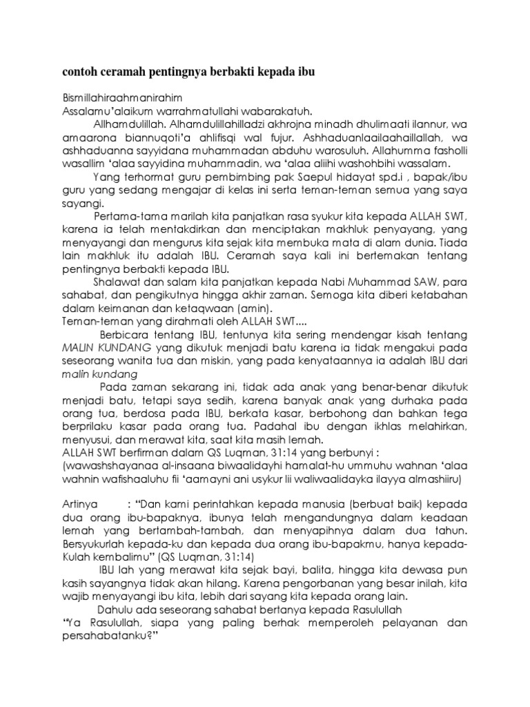Mulai dari contoh ceramah tentang fitnah ceramah tentang ghibah ceramah tentang generasi muda contoh ceramah tentang hijrah contoh ceramah larangan pacaran contoh ceramah tentang rezeki contoh ceramah tentang riba ceramah bulan suci ramadhan dll. Contoh ceramah lucu tentang cinta ibu. Contoh pidato tentang ibu islami. Contoh teks ceramah ceramah merupakan kegiatan penyampaian pesan yang mempunyai tujuan untuk memberikan nasehat petunjuk maupun petuah kepada pendengar secara lisan. Padahal dalam al quran allah swt telah berfirman dalam surat al isra ayat 23 yang artinya. Boleh copy paste tapi jangan lupa cantumkan sumber.