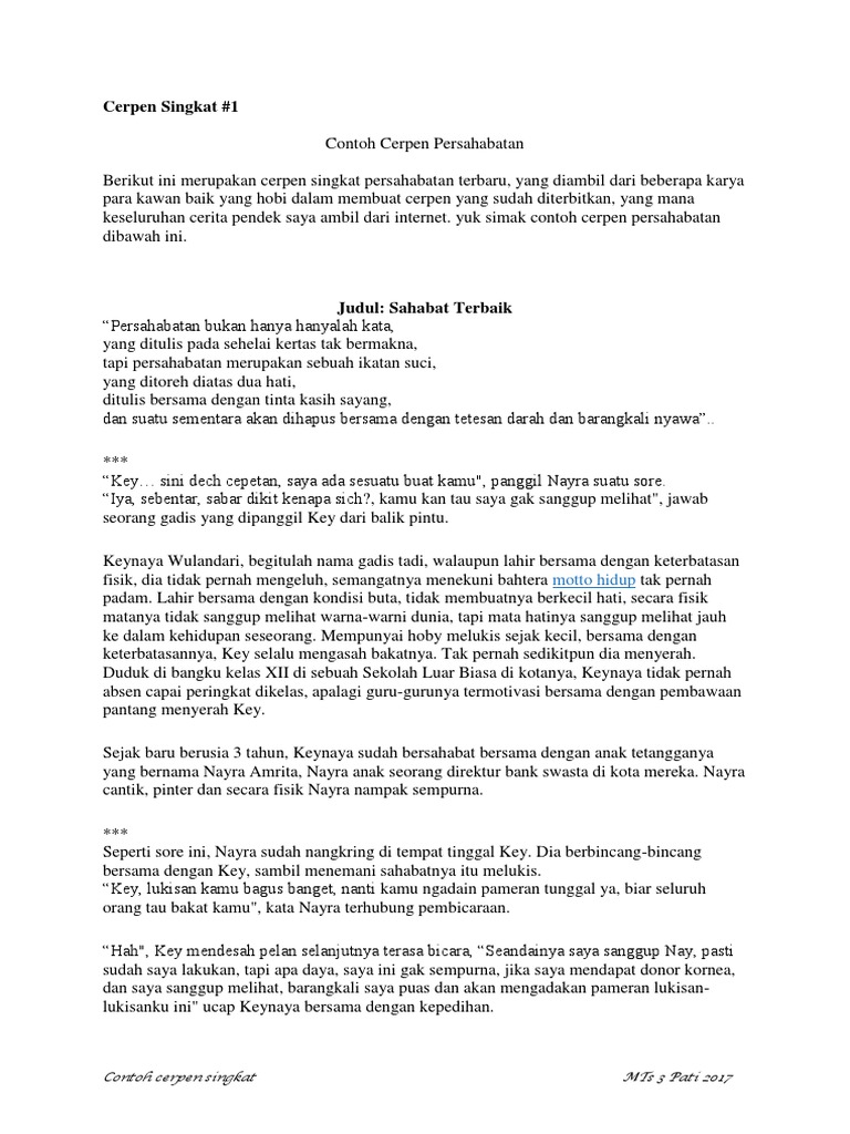 Ia bahkan lebih memilih rezeki hasil usahanya sendiri dibanding uang dari rasa kasihan orang lain. Anak perempuan pada cerita inspiratif singkat tadi adalah contoh orang yang pantang menyerah. Padahal bunga mawar dagangannya masih tersisa banyak di keranjang. Contoh cerpen persahabatan tamat baca juga. Contoh dongeng binatang yang kakak ceritakan semuanya adalah cerita hewan singkat terbaik dari seluruh dunia. 6 juli 2019 dongeng cerita rakyat.