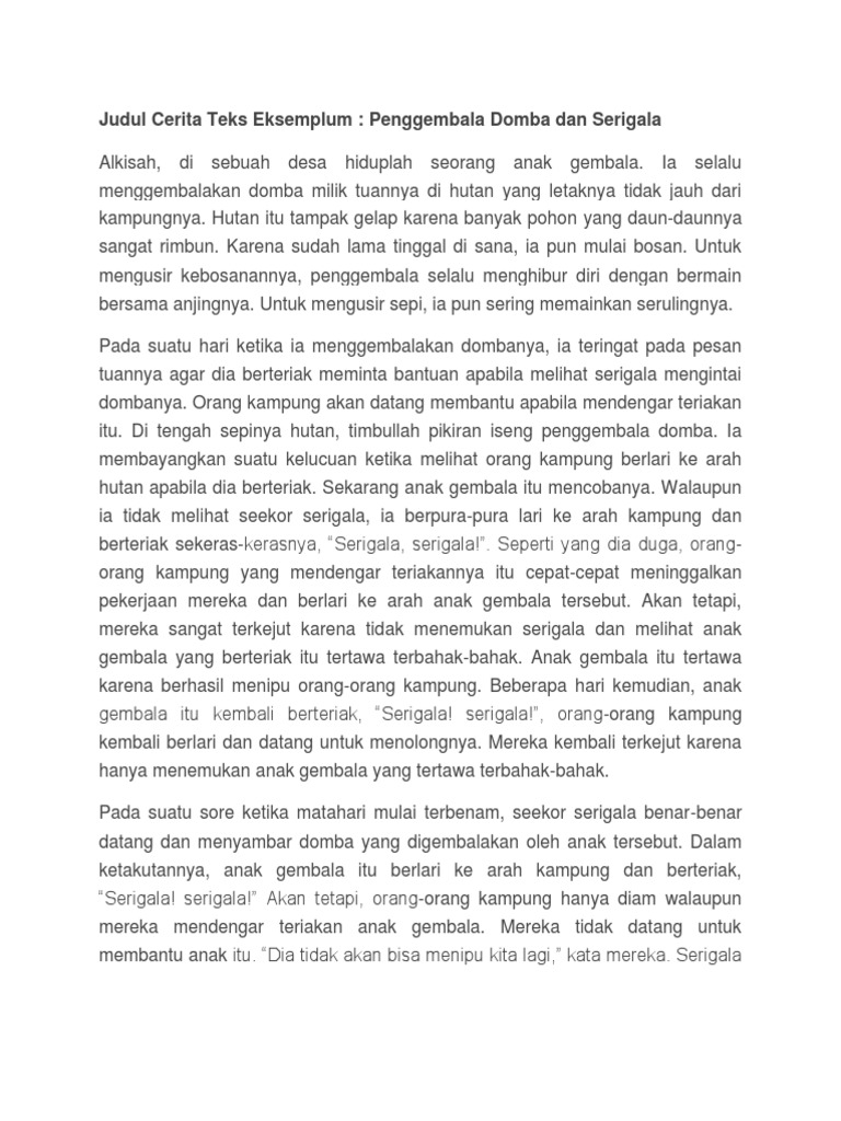 Contoh teks eksemplum biasanya diawali dengan pengenalan tokoh kemudian peristiwa yang dialami oleh tokoh serta ditutup dengan interpretasi yang timbul dari tokoh tersebut. Teks eksemplum adalah teks cerita yang menceritakan tentang perilaku atau tokoh dari sebuah ceritaceritanya diawali dengan pengenalan tokoh setelah itu membahas peristiwa apa saja yang dilalui oleh tokoh dan diakhiri dengan interpretasi dari dalam diri tokoh tersebut. Teks eksemplum merupakan teks yang berbentuk cerita yang menceritakan tentang perilaku seseorang atau tokoh dalam sebuah cerita. Contoh teks eksemplum yang baik dan benar teks eksemplum adalah teks cerita yang menceritakan perilaku atau tokoh dari ceritanya. Teks eksemplum adalah teks yang menceritakan perilaku tokoh dalam ceritanya. Ceritanya diawali dengan perkenalan tokoh.