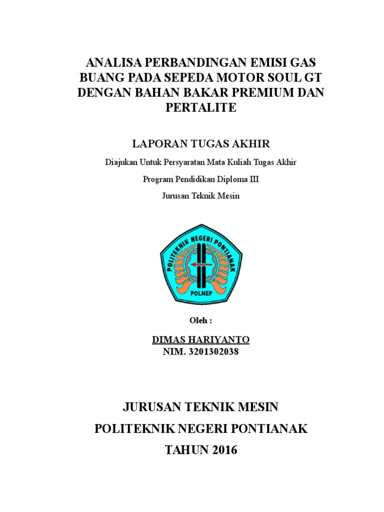 Contoh dan penjelasannya melalui pemaparan contoh baik sistematika maupun judul diharapkan pembaca dapat menemukan inspirasi untuk penyelesaian pembuatan proposal tugas akhir di institusinya masing masing. Namun cover proposal harus dibuat semenarik mungkin. Academiaedu is a platform for academics to share research papers. Tim penguji tim penguji ditetapkan oleh ketua program studi atau oleh panitia ujian akhir program. Akhir kata semoga laporan tugas akhir ini dapat bermanfaat bagi mahasiswa politeknik negeri bali khususnya dan pembaca pada umumnya. Dan yang paling penting lagi selama pemberian tugas juga pasti memiliki jangka waktu pengumpulan tugas tersebut.