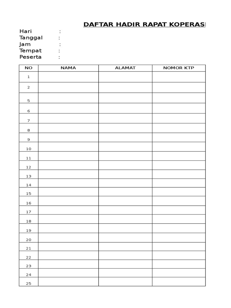 Home mengelola pertemuanrapat rapatpertemuanmeeting contoh daftar hadir peserta rapat contoh daftar hadir peserta rapat. Unduh sebagai doc pdf txt atau baca online dari scribd. Contoh daftar hadir kegiatan. Contoh form daftar hadir rapat setiap perusahaan form daftar hadir pastilah berbeda beda. Sesuai dengan contoh beberapa hal yang perlu anda perhatikan ketika membuat berita acara kegiatanrapat antara lain yaitu kop. Bagian paling atas dari berita acara ini merupakan hal wajib yang tidak boleh ketinggalan dalam sebuah berita acara.