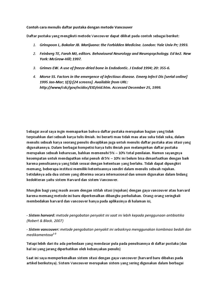 Pastinya di setiap buku terdapat daftar pustaka yang biasanya berada di bagian belakang buku tersebut. Contoh daftar pustaka vancouver. Cara menulis daftar pustaka dengan metode vancouver akan saya tuliskan dalam postingan kali inihal ini sebagai kelanjutan dari postingan saya sebelumnya tentang cara menulis daftar pustaka dengan metode harvard. Awalnya nama vancouver diambil karena sekelompok editor kedokteran berkupul di vancouver british columbia canada pada tahun 1979 untuk mebicarakan tentang petunjuk umum format manuskrip yang akan diterbitkan pada jurnal tersebut. Van nostrand reinhold. Setelah sebelumnya membahas daftar pustaka bergaya harvard kali ini akan dibahas tentang format penulisan daftar pustaka bergaya vancouver.