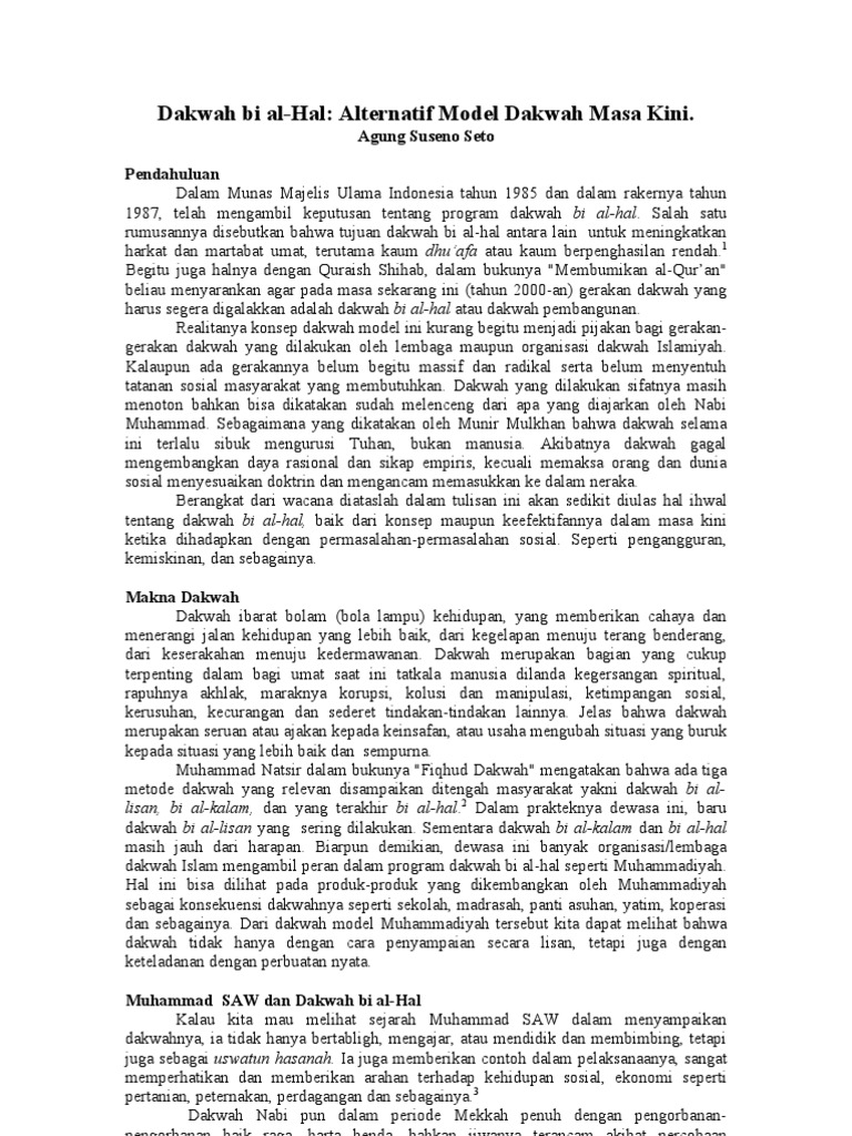 Contoh dakwah bil hal ada banyak sekali metode dakwah yang dapat dilakukan oleh umat islam untuk menyebarkan ajaran kebaikan yang semuanya dapat disesuaikan dengan kemampuan masing masing. Yang artinya ajakan merupakan suatu gerakan yang bersifat menyeru mengajak dan memanggil orang untuk beriman dan taat kepada allah sesuai dengan aturan aqidah syariat dan akhlak islam. Yang berupa kebenaran yang nyata serta mendidik umat manusia melalui contoh yang baik uswatun khasanah. Contoh dakwah islam itu berbagai macam dengan macam macamnya metode mereka dalam berdakwah. Metode dakwah bil qolam menggunakan. 1 4 yaitu islamisasi via ucapan.