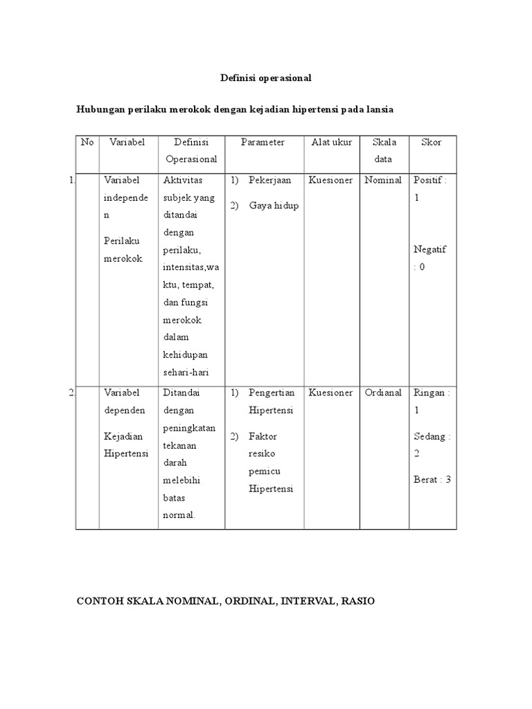 Dari judul penilitian di atas dapat diketahui definisi. Sehingga dalam definisi operasional mencakup penjelasan tentang. Proposal tersebut dapat menjelaskan tentang kegiatan yang menghasilkan rancangan atau produk yang dapat dipakai untuk memecahkan masalah masalah aktual yang. Suatu penelitian dengan judul faktor factor yang mempengaruhi terjadinya hipertensi pada ibu hamil. Oleh karenanya diperlukan definisi operasional dari variabel tersebut. Contoh definisi operasional dalam proposal skripsi a.