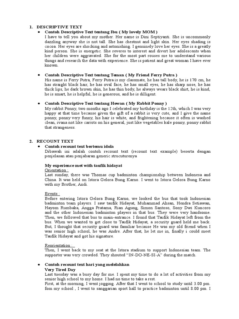 Kkami pergi ke sekolah bersama sama. Contoh descriptive text singkat contoh descriptive text tentang tumbuhan contoh descriptive text tentang tempat wisata contoh descriptive text tentang he wan contoh descriptive text place contoh descriptive text about my shoes contoh descriptive text bahasa inggris contoh descriptive text tentang tumbuhan contoh descriptive text tentang tempat wisata contoh descriptive text tentang he. Artis yag terkenal dengan prinsip hidupnya dream believe and make it happen ini telah menjadi artis yang penuh dengan inspirasi positif bagi fans dan seluruh masyarakat indonesia. Contoh descriptive text artis idola indonesia contoh descriptive text artis idola kecil contoh descriptive text artis idola perempuan contoh descriptive text tentang orang contoh descriptive text bahasa inggris contoh descriptive text beserta artinya contoh descriptive text wisata korea contoh descriptive text tentang idola contoh descriptive text tentang orang contoh descriptive teks. Contoh descriptive text about my mother artinya terbaru kali ini admin akan membagikan descriptive text tentang ibu. Ernesto berasal dari keluarga berpendidikan.