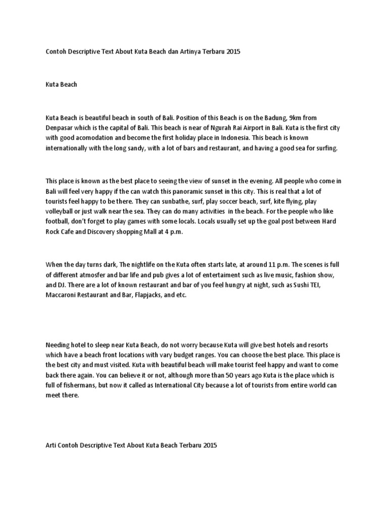 Contoh descriptive text tentang tempat bersejarah. Example of descriptive text contoh descriptive text kali ini merupakan kumpulan contoh teks descriptive yang akan mendeskripsikan 10 tempat liburan paling ciamik yang dimiliki indonesia. Mudah mudahan bisa membantu. Descriptive text ini sangat berguna untuk kebutuhan pendidikan ataupun sebagai sarana untuk memperkenalkan suatu hal dengan orang agar dapat mengenal dengan lebih dekat. Wwwngkidscouk setelah puas berkeliling di benua amerika yuk kita kunjungi salah satu keajaiban dunia di italia yaitu colosseum. Colosseum di italia colosseum di italia sumber gambar. Contoh descriptive text tentang tempat about place venice dan tempat tempat di indonesia pada bahasan bahasan sebelumnya kita telah mendalami pembahasan lengkap tentang purpose generic stucture dan berbagai contoh dari descriptive teks.