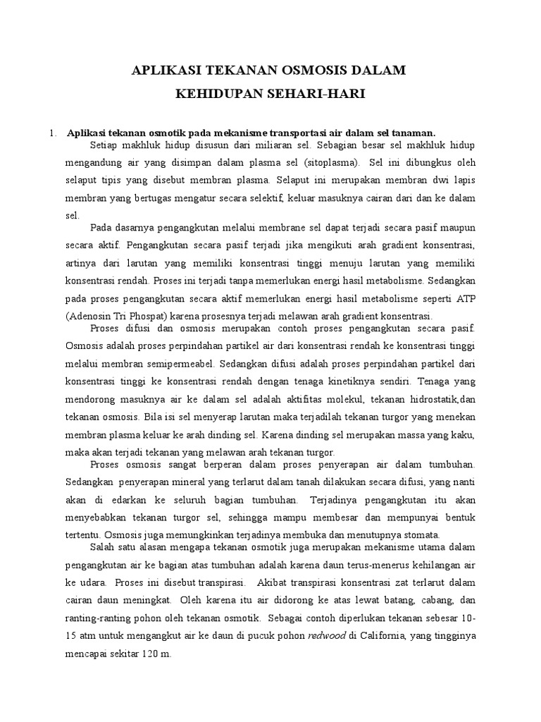 Ini adalah efek dari osmosis. Contoh osmosis pada kehidupan sehari hari. Dengan kata sederhana osmosis adalah transfer air untuk menyeimbangkan antara larutan lemah dan kuat. Ketika tangan kita tenggelam pada cucian untuk waktu yang lama kulit akan terlihat membengkak. 17 contoh osmosis di kehidupan sehari hari konsep dan definisi sebelum melihat contoh osmosis ada baiknya menyimak dulu pengertian osmosis. Pemberian gula pada cairan teh tawar.