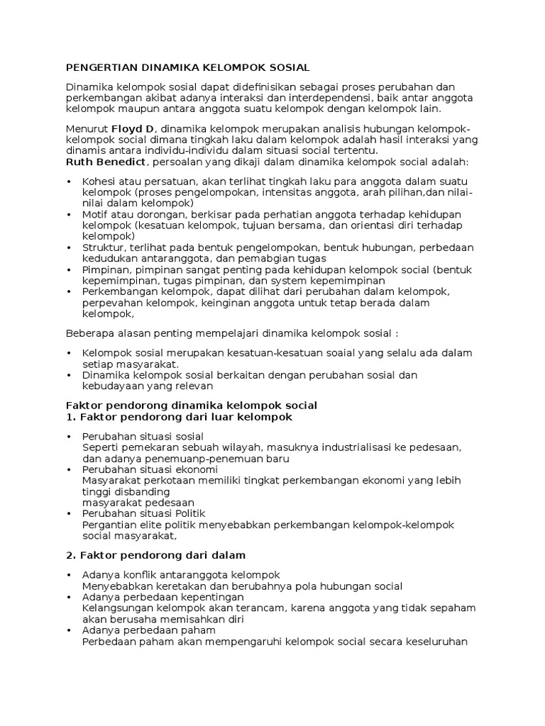 Pertama saya akan merujuk pada beberapa pendapat yang dikemukakan oleh para ahli sosiologi tentang apa itu kelompok sosial. Beberapa topik yang menjadi fokus dalam studi tentang dinamika sosial misalnya dinamika kelompok dinamika keluarga dan dinamika penduduk. Contoh kelompok sosial primer yaitu kelompok sepermainan dan keluarga. Kelompok sosial primer adalah yang sangat sederhana dengan anggota yang saling kenal satu sama lain dan memiliki kerjasama yang sangat erat. Dinamika kelompok berasal dari kata dinamika yang berati interaksi atau interdependensi. Dinamika kelompok pengertian fungsi jenis ciri keunggulan kekurangan kegiatan.
