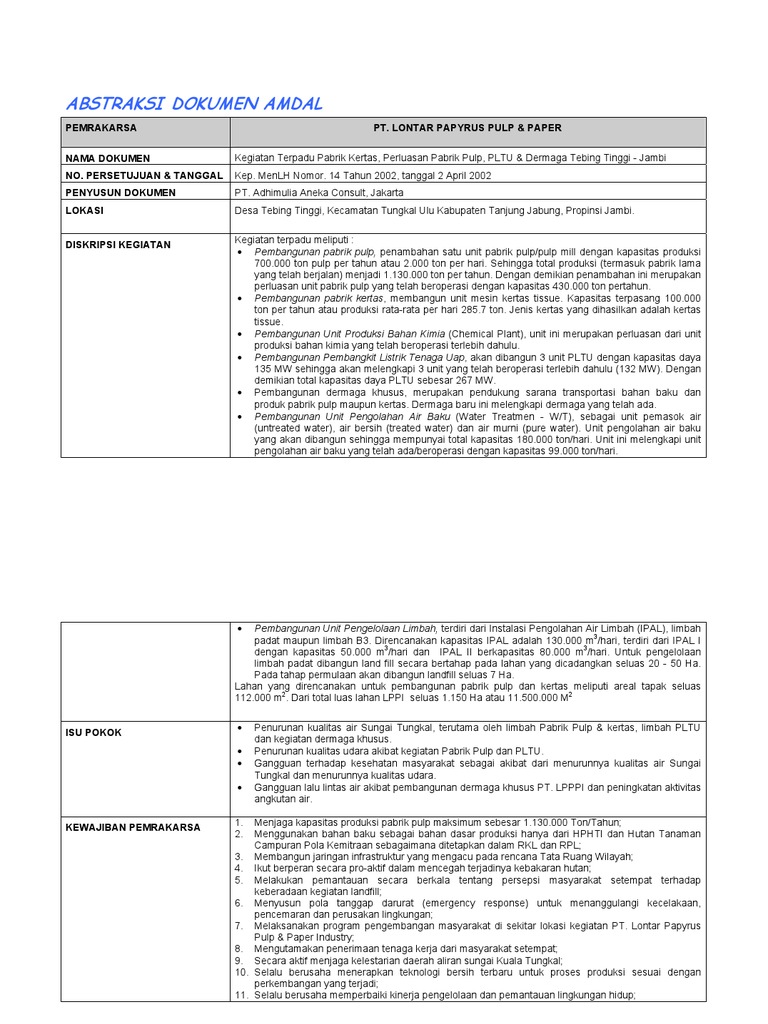 Contoh dokumen amdal pabrik. Contoh makalah amdal pabrik kecap saus dan kerupuk kata pengantar puji syukur penulis panjatkan ke hadirat allah swt yang telah melimpahkan hidayah dan rahmat nya sehingga penulis dapat menyelesaikan makalah yang berjudul analisis mengenai dampak lingkungan pada pabrik cv z yang memproduksi saos kecap dan kerupuk. Selamat datang bagi anda yang sedang mencari contoh dokumen amdal analisis mengenai dampak lingkungan baik untuk referensi pembuatan dokumen amdal untuk sebuah proyek seperti amdal lingkungan amdal jalan amdal perusahaan amdal pabrik amdal pdf amdal industri maupun amdal untuk keperluan study. Perkembangan industri saat ini telah memberikan sumbangan besar terhadap perekonomian indonesia. Contoh dokumen amdal pabrik pdf. Amdal pabrik tahu bab i. Pengertian manfaat tujuan jenis dan contohnya lengkap amdal merupakan kajian dampak besar dan penting terhadap lingkungan hidup dibuat pada tahap perencanaan dan digunakan untuk pengambilan keputusan.