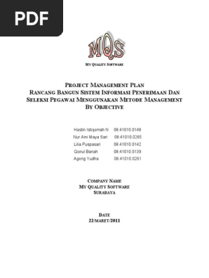 Dalam pmbok disebutkan bahwa project management plan adalah dokumen yang menjelaskan bagaimana proyek akan dilaksanakan dimonitor dan dikendalikan. Inisiasi perencanaan dan definisi dengan dua kontrol kategori. Dokumen scope management plan dokumen scope management website pembelajaran mpti manajemen proyek teknologi informasi 10 maret 2014 draft disiapkan. Matriks dasar dari sebuah analisis perencanaan ruang lingkup terdiri dari tiga kategori utama. Verifikasi dan pengendalian perubahan diselingi antara tiga kategoriutama. Proyek bertujuan untuk mengupgrade sistem informasi akademik pada uin syarifhidayatullah jakarta agar terdapat media pembelajran e learning secara real time.