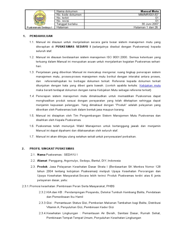 Contoh dokumen sistem manajemen mutu. Susunan dokumen manajemen mutu menganut aturan hirarki di mana masing masing dokumen harus ditetapkan. Standar internasional ini berdasarkan prinsip prinsip manajemen mutu yang dijelaskan dalam iso 9000. Anda perlu sistem manajemen mutu iso 90012015. Dokumentasi sistem manajemen mutu management article january 3 2014 angga dokumentasi dalam implementasi iso 9001 selalu penting karena dokumen merupakan acuan kerja bukti penerapan serta bagian dari persyaratan iso 9001. Kebijakan mutu merupakan salah satu dokumen yang wajib dimiliki oleh setiap perusahaan atau organisasi yang menerapkan sistem manajemen mutu iso 90012008. Harga paket lengkap dokumen iso 90012015 sistem manajemen mutu rp 7500000 tujuh juta lima ratus ribu rupiahpengiriman file via emailpaket lengkap dokumen iso 90012015 adalah sekumpulan dokumen siap pakai dalam format microsoft office word excel atau power point yang telah memenuhi persyaratan iso 90012015 sistem manajemen mutu.