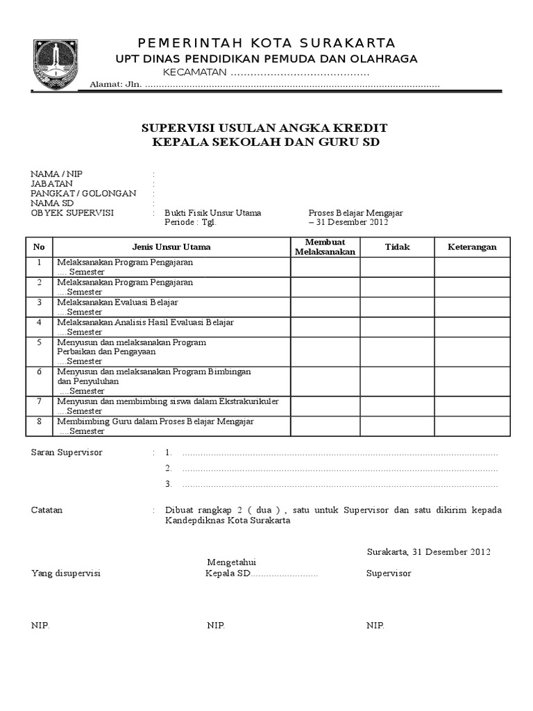 Kenaikan pangkat ini merupakan sebuah penghargaan yang diberikan atas prestasi besar yang diberikan pemerintah kepada pegawai negeri sipil untuk meningkatkan kinerja dan. Adapun format yang kami bagikan kali ini sudah sesuai dengan peraturan yang berlaku dalam mengajukan dupakpak ini. Baik itu unsur utama maupun unsur penunjang. Untuk naik pangkat dari iiib ke iiic pak budiman butuh tabel jenjang jabatan fungsional guru dari tabel dibawah terlihat bahwa pak budiman untuk ke iiic butuh kredit sebesar 200 kredit saat ini iiib adalah 150 jadi pak budiman butuh kredit tambahan sebesar 50. Yang mengajar 26 jam tatap muka per minggu dan telah mengikuti pk guru pada april 2016 dengan nilai 45. Contoh aplikasi dupakpak kenaikan pangkat guru lengkap aplikasi dupak kenaikan pangkat dengan usulan pak guru pns aplikasi dupak data usul penetapan angka kredit adalah aplikasi berbasis microsoft excel xlxs untuk mempermudah dan mempercepat dalam menghitung angka kredit guru aplikasi ini sesuai dengan permenpan rb no 16 tahun 2009 tentang pkg dan kenaikan pangkat pns guru.