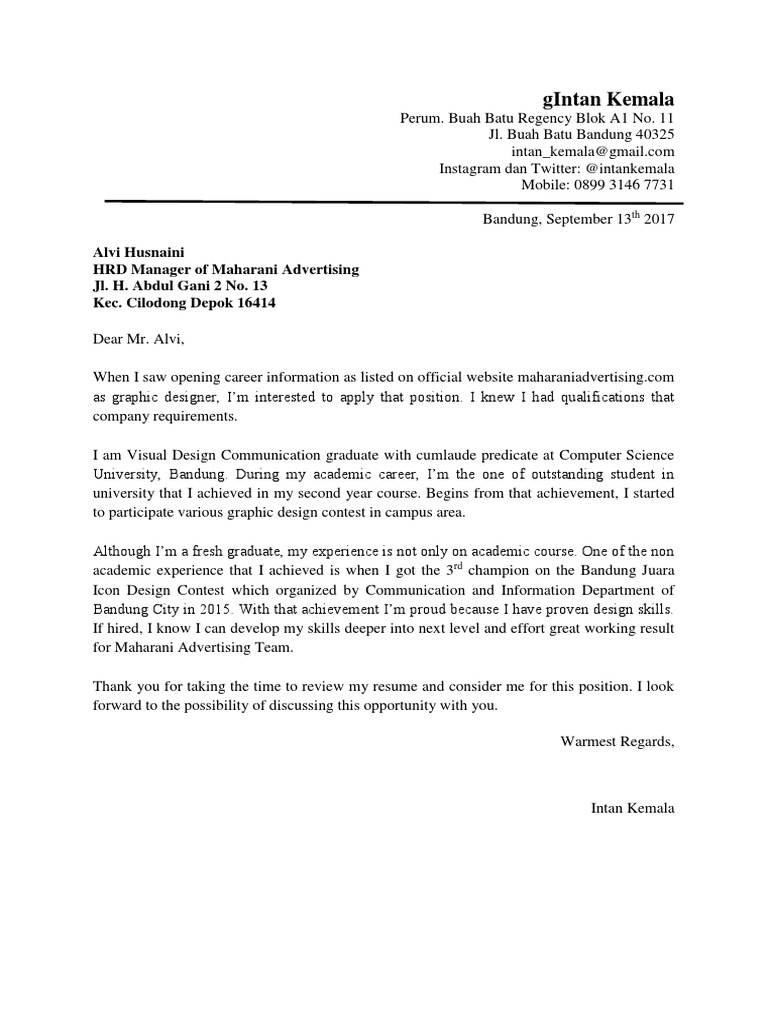 Nah untuk menutupi kebutuhan tersebut maka seseorang harus memiliki pekerjaan dan bisa mendapatkan penghasilan. Membuat surat lamaran kerja dalam bahasa inggris sebenarnya tak ada bedanya dengan membuat surat lamaran kerja pada umumnya. Hal terpenting yang harus diperhatikan pada saat membuat surat lamaran kerja berbahasa inggris adalah bahasa yang formal format yang benar dan tata cara penulisan yang baku baik dan benar. Setelah itu isi email dengan surat lamaran application letter dan lampirkan cvresume anda. Cv lamaran kerja bahasa inggris yang menarik bukan hanya dilihat dari cover atau desain tetapi juga gaya penulisan dan kerapihan dad berbagai sisi. Apakah kamu sedang mencari contoh surat lamaran kerja bahasa inggris cover letter misalnya karena ingin melamar kerja ke perusahaan multinasionalmeskipun proses mencari pekerjaan sudah terjadi sejak lama namun tak banyak orang yang dapat membuat surat lamaran pekerjaan yang baikhal ini karena kurangnya pembekalan bagi mahasiswa dalam hal persiapan untuk melamar pekerjaan ke sebuah.