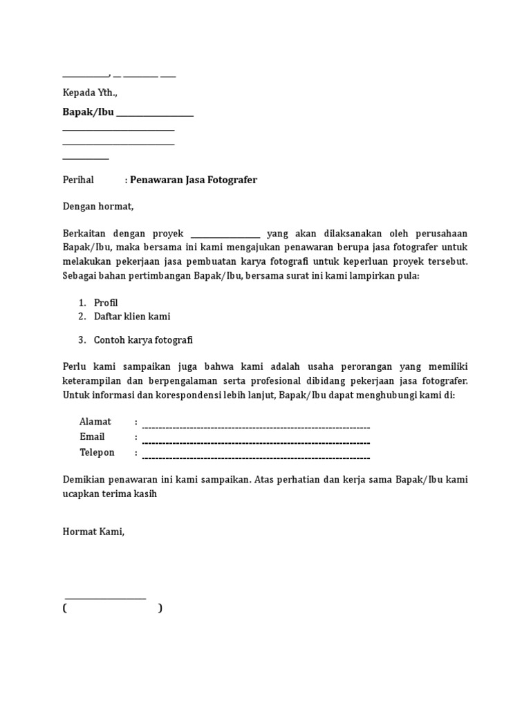 Surat penawaran jasa servis ac. Nah jika tidak ingin melakukan kesalahan dalam membuatnya maka wajib hukumnya untuk memperhatikan beberapa contoh surat penawaran yang sudah ada. Membuat surat penawaran barang jasa bukan hanya tentang tulisan berisi penawaran belaka tapi ada tata caranya karena jenis surat ini adalah surat resmi yang punya aturan baku. Adapun tujuan dari digunakannya surat niaga tersebut adalah untuk memperoleh keuntungan bagi perusahaan dan memajukan perusahaan. Kepada yth bapakibu wo supermasi manajer operasional with love and passion wedding organizer jl. Contoh surat penawaran dewasa ini surat penawaran menjadi salah satu hal penting utama dalam hal perdagangan.