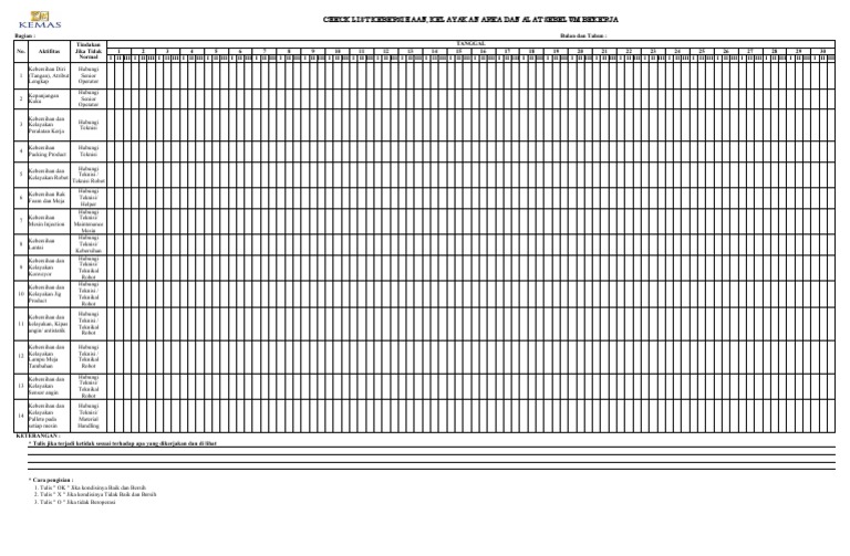 Perusahaan maka dapat dihasilkan secara elektronik. Form check list kebersihan dan kelayakan area sebelum bekerja. Ya berikut ini checklist dari kang agus sopandi s lazerian idonesiamayan gan cukup bermanfaat. Mas bro sekalian mau aman berkendara monggo jangan lupa cheklist kondisi kendaraan andaterutama bagisampean yang mau berkendara jauh ya setidaknya prefentif lah jaga jaga sedia duit sebelum ketemu warung hhahahahah. Contoh form checklist kendaraan operasional perusahaan. Contoh format instruksi kerja sebuah perusahaan.