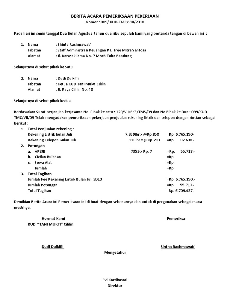 Yang menjadi pertanyaan di benak saya dengan membalik kata kata hasil pemeriksaan menjadi pemeriksaan hasil apakah menimbulkan makna yang berbeda. Tugas pjphppphp adalah melakukan pemeriksaan administratif barangjasa yang diserahkan terimakan bukan lagi menyatakan pekerjaan 100. Berita serah terima hasil pekerjaan. Padahal pada umumnya berita acara ini sangat penting sekali untuk anda pada saat ingin bekerjasama dengan orang lain baik itu secara individu ataupun kelompok. Contoh berita acara ini sangat dibutuhkan bagi mereka yang merasa kesulitan untuk membuatnya atau bahkan belum mengerti apa itu berita acara. Ketentuan ini kemudian disamakan secara serampangan dengan berita acara penerimaan hasil pekerjaan yang dibuat oleh pphp era perpres 542010.