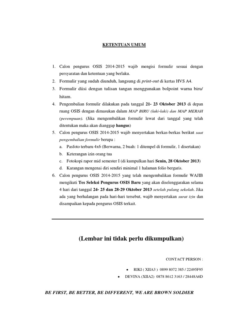 Dengan mengisi formulir pendaftaran pengurus osis ini maka saya secara sadar dan. Formulir pendaftaran osis baru 2014 2015 sma marsudirini bekasi. Doc formulir pendaftaran anggota gerakan pramuka emma contoh formulir registrasi anggota pramuka baru smp pilpay. Murid untuk mengikuti pendaftaran pengurus osis masa bhakti 20162017. Dalam pemilihan pengurus osis perlu diadakannya pendaftaran. Contoh formulir pendaftaran organisasi pramuka materi pelajaran 7.
