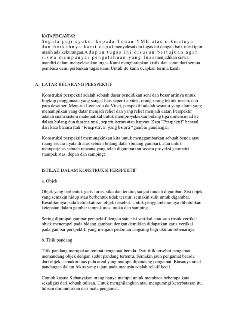 Gambar perspektif dalam seni pembuatan contoh gambar perspektif membutuhkan penggabungan antara seni dan ilmu sehingga dalam menggambar sebuah objek. Selain itu gambar ini juga memiliki berbagai ukuran.
