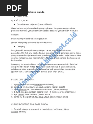Artikel ini akan membahas gaya bahasa tersebut secara ringkas dan jelas. Gaya bahasa mijalma atau bahasa personifikasi adalah gaya bahasa yang menggunakan atau meminjam cara atau tingkah laku manusia untuk ditetapkan pada benda mati atau hewan. Gaya basa mijalma atawa personifikasi nyaeta gaya basa nu ngibaratkeun barang sasatoan atawa tutuwuhan mibanda kalakuan jelema. Sama seperti bahasa lainnya bahasa sunda juga kaya dengan pengungkapan perasaan batin yang dituangkan dalam bentuk majas atau gaya bahasa. Sama seperti bahasa lainnya bahasa sunda juga kaya dengan pengungkapan perasaan batin yang dituangkan dalam bentuk majas atau gaya bahasa. Gunung siga milu nguyung lebak siga milu susah.