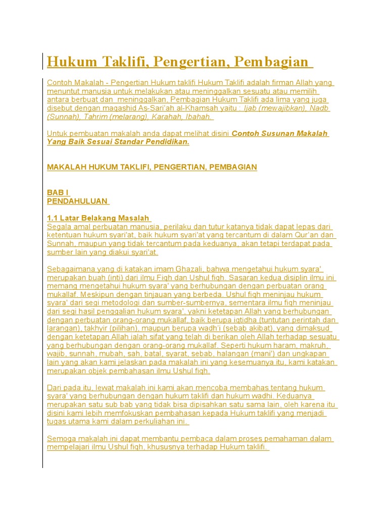 Pengertian hukum taklifi hukum taklifi merupakan kitab allah swt.