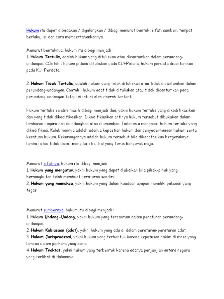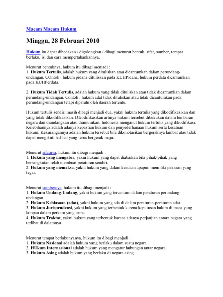 Contoh hukum undang undang. Undang undang dipandang sebagai salah satu dari tiga fungsi utama pemerintahan yang berasal dari doktrin pemisahan kekuasaan sebagai contoh hukum objektifkelompok yang memiliki kekuasaan formal untuk membuat legislasi disebut sebagai legislator pembuat undang undang sedangkan badan yudikatif pemerintah memiliki kekuasaan formal untuk menafsirkan legislasi dan badan eksekutif pemerintahan. Yurisprudensi adalah salah satu sumber hukum formal terpenting karena bisa menjadi sumber hukum terhadap suatu kasus yang belum diatur dalam undang undang. Pada saat lahirnya undang undang nomor 10 tahun 2004 pengaturan mengenai perpu terdapat pada pasal 7 ayat 1 dengan urutan yang itu dari undang undang dasar negara republik indonesia tahun 1945 undang undangperaturan pemerintah pengganti undang undang peraturan pemerintah peraturan presiden peraturan daerah. Dari uraian contoh diatas sekali lagi dapat kita simpulkan bahwa menurut sifat melawan hukum formil suatu perbuatan tersebut yang telah memenuhi rumusan undang undang tidak secara serta merta merupakan perbuatan pidana dikarenakan adanya hal hal yang telah ditentutkan oleh undang undang sebagai alasan pembenar yang dapat menghapuskan sifat melawan perbuatan hukum tersebut. 2 hukum tertulis yang tidak dikodifikasikan. Peraturan perundang undangan pengertian proses jenis contoh dalam sebuah peraturan perundang undangan memiliki arti yang penting untuk mewujudkan tujuan negara.
