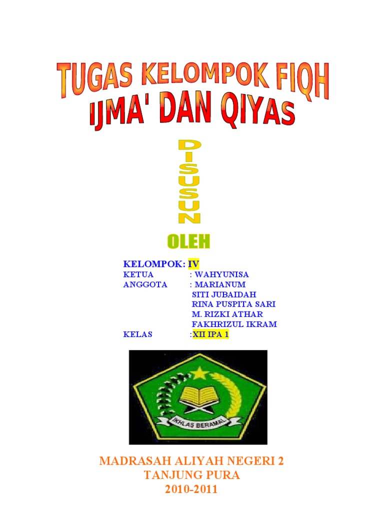 Ijma dan qiyas termasuk sumber hukum ya. Seperti al quran as sunnah dan ijma merupakan beberapa sumber yang telah di tetapkan sebagai hukum islam yang mana di dalamnya merupakan terdapat berbagai macam larangan dan juga perintah yang harus di kerjakan oleh manusia. Sedangkan pendekatan al maqashid asy syariah bertujuan untuk menyingkap dan menjelaskan hukum dalam berbagai kasus yang tidak ada nash ayat atau hadisnya secara khusus dapat diketahui melalui beberapa metode yaitu ijma qiyas istihsan dan lain. 5 shares salah satu sumber hukum islam yang disepakati oleh jumhur ulama setelah al quran as sunnah dan ijma adalah qiyas. Berisi tentang penjelasan ijma dan qiyas yang diterangkan dengan jelas dan teratur. Mengenai rukun qiyas yang pertama dan kedua yakni ashl dan far tidak ada syarat syarat lainnya kecuali bahwa masalah pokok sudah ada kepastian hukumnya dengan nash dan far masalah cabang belum ada kepastian hukumnya baik dengan nash maupun dengan ijma dan juga tidak ada hambatan yang menghalangi dipersamakan hukumnya pada masalah pokok dan cabang.