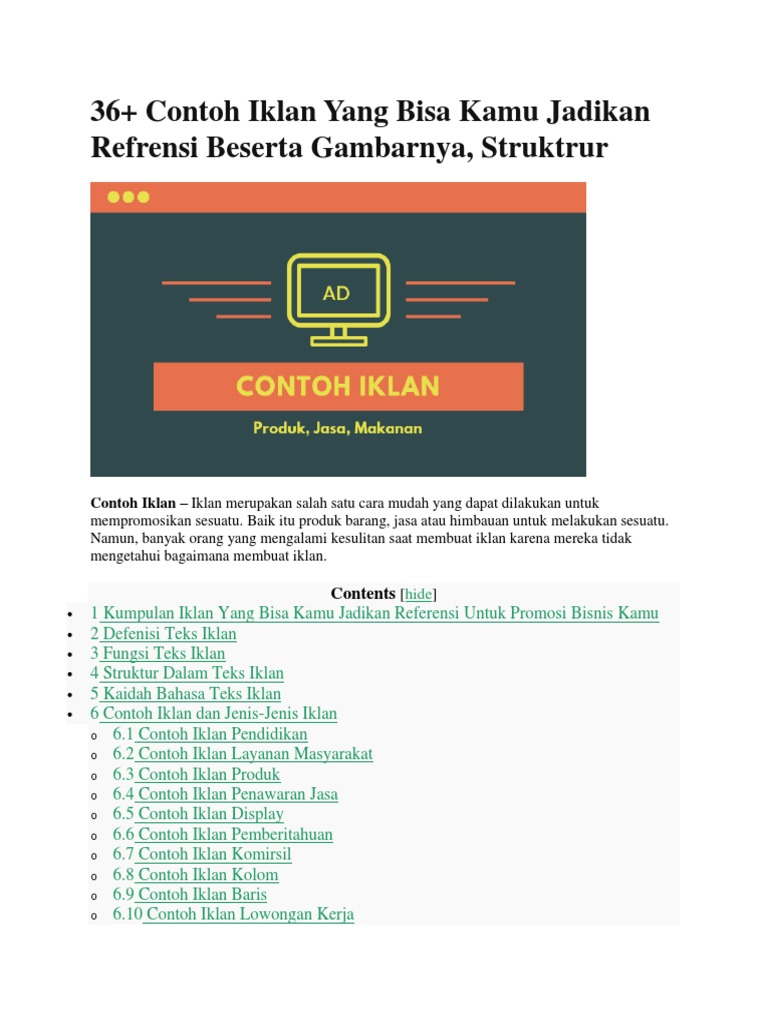 Dalam membuat teks iklan dibutuhkan teknik tertentu agar anda bisa menawarkan suatu produk. Semoga contoh contoh iklan di atas dapat menginspirasi anda dalam mendesain iklan untuk produk yang anda buat. Contoh iklan menurut renald kasali iklan merupakan pesan yang menawarkan produk atau jasa yang ditunjukkan kepada masyarakat semua orang melalui media masa. Contoh iklan bahasa jawa beserta gambarnya yang disediakan pada artikel kali ini mencakup produk makanan minuman dan pendidikan.