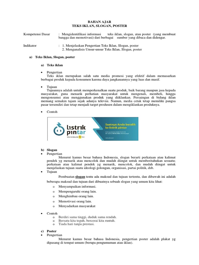 Tujuan ketiganya sama untuk membujuk khalayak berbuat sesuatu. Berikut perbedaan antara iklan slogan dan poster. Iklanslogandan poster sama sama menggunakan kata kata untuk menyampaikan pesan. Materi iklan slogan dan poster bahasa indonesia kelas 8 smp terbaru download materi iklan slogan dan poster bahasa indonesia kelas 8 smp terbaru contoh slogan iklan dan poster iklan pster cara membuat. Iklanslogan dan poster menggunakan kata kata dan gambar. Contoh slogan diatas dapat anda rubah sesuai dengan ide kreatif anda atau jika anda belum menemukan slogan dan poster yang cocok menurut anda silahkan cari di situs web lain karena tentunya banyak situs web yang menyediakan contoh poster dan slogan dengan berbagai tema atau bisa saja anda membuat sendiri poster sesuai dengan tema kreasi dan imajinasi yang anda inginkan.