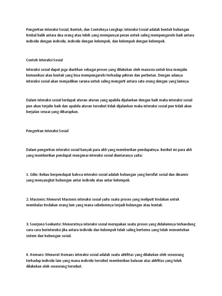 Contoh interaksi individu dengan individu. Pengertian interaksi sosial adalah berbagai hubungan sosial yang berkaitan dengan hubungan antar individu antar individu dengan kelompok serta kelompok dengan kelompok. Ini adalah contoh interaksi sosial individu dengan individu. Contoh interaksi sosial interaksi sosial merupakan hubungan timbal balik antara dua individu atau lebihdefinisi interaksi sosial bisa terjadi dimana saja di lingkungan masyarakat. Regular interaksi sosial individu dengan individu yang terjadi secara umum hari demi hari namun mungkin dengan tidak direncanakan. Regulated interaksi sosial yang dilakukan dengan direncanakan dan biasanya diatur dengan aturan tertentu. Interaksi sosial merupakan salah satu bentuk komunikasi yang selalu dilakukan oleh manusia pemenuhan kebutuhan yang tidak bisa dilakukan secara individu tentu memerlukan pihak lain atau kelompok sosial lainnya.