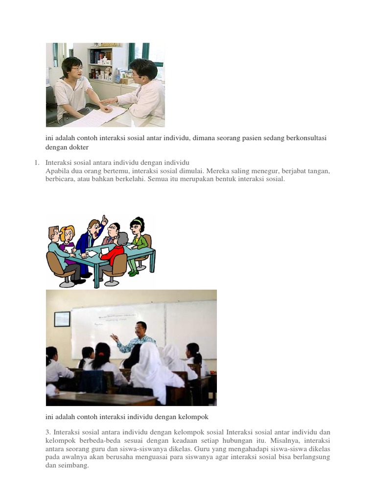 Jenis kelompok sosial yang kedua adalah kelompok sekunder di dalam kelompok ini interaksi sosial tidak terjadi secara langsung atau melalui perantara dan sifatnya kurang kekeluargaan. Kelompok sosial terbagi menjadi berbagai macam bentuk. Kelompok sosial primer adalah yang sangat sederhana dengan anggota yang saling kenal satu sama lain dan memiliki kerjasama yang sangat erat. Contoh interaksi sosial interaksi sosial merupakan hubungan timbal balik antara dua individu atau lebihdefinisi interaksi sosial bisa terjadi dimana saja di lingkungan masyarakat. Pendapat lain interaksi sosial merupakan suatu hubungan timbal balik antara seorang individu dengan individu lainnya seorang individu dengan kelompok maupun kelompok dengan kelompok yang lain. Sejak dilahirkan manusia telah memiliki dua hasrat pokok dalam dirinya yaitu keinginan untuk menjadi satu dengan manusia lain dan keinginan untuk menjadi satu dengan suasana alam disekitarnya.